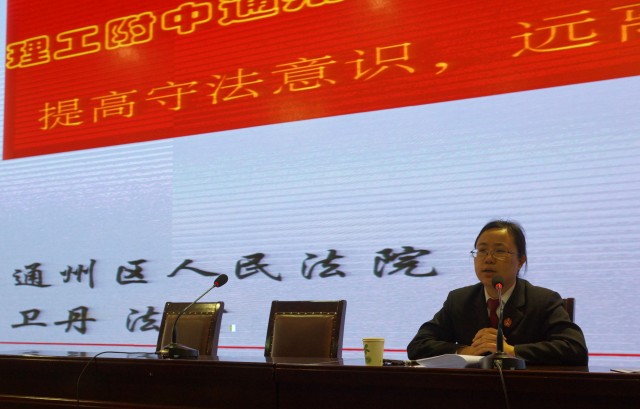 3月20日,理工附中通州校区开展了“知法 学法 守法”法制宣传进校园的活动,通州区人民法院少年法庭审判长卫丹法官为同学们做了题为《提高守法意识 远离违法犯罪》的专题讲座。赵金河校长、马立秋主任、刘妍主任、赵蕾主任、王立伟主任以及高一、高二全体师生参加活动。石杨主任主持本次活动。