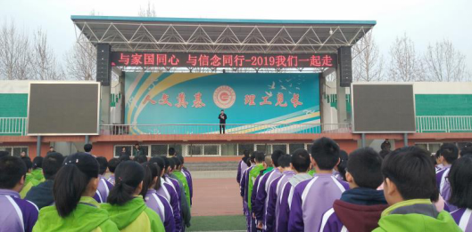 最后,白校长号召全校师生。 一起许下2019年的心愿和梦想,与国家同心 与信念同行-2019我们一起走 ,做一名努力奋斗的追梦人!